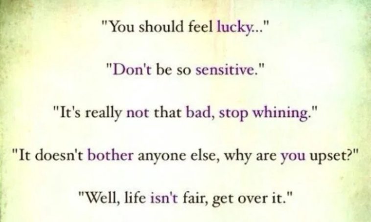This one’s awesome. We invalidate other people by saying they don’t feel what they are saying they feel. They report what they’re experiencing in real-time, and instead of accepting that — we just tell them they’re mistaken. That they don’t know what they’re saying and feeling, as if we think they’re hallucinating or mentally insane. It’s hilarious in the saddest way possible how common this is.