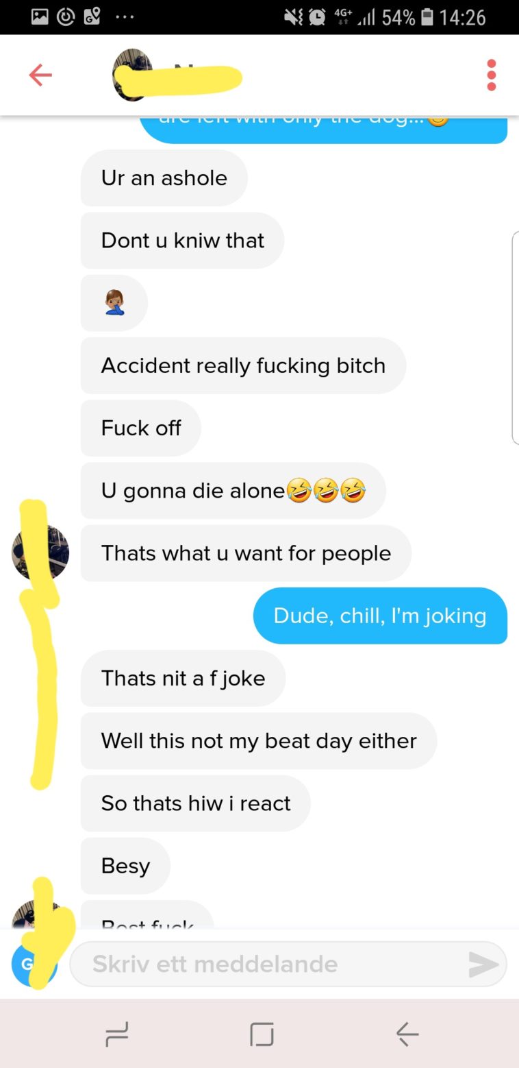 More important though than what you put in your profile is of course how you interact. Tinder is a place to meet people, like a bar. Someone being on Tinder does not automatically give you the right to sexual advances. This seems surprisingly difficult for men to understand. I’ve had many men start conversations with “I’d like to be inside of you” or “Can I have some pussy” and similar advances. It is uncomfortable. It is not a one off. It is not cultural. I’ve had it happen in various countries in the world, and it happens more than once. Is this common the other way around as well? Do women do this a lot? How do you men feel about it?