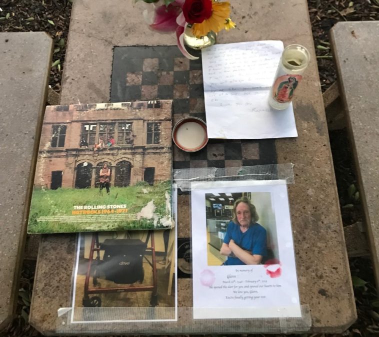 Glenn was a fixture of the neighborhood. Always polite, helpful, and willing to have a neighborly chat. Through conversations with him I gathered that he stayed at some sort of shelter or halfway house and was trying to stay clean. “I’m getting a place of my own” he’d say, or “I had such and such setback and am almost back on my feet,” seemingly trying to save face.