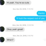 We meet in person and he’s just SUPER odd. It’s the type of odd that you can’t really articulate or pinpoint what’s off about him but there’s something not right. I, not feeling it, make the notion that I want to leave, and he starts grabbing my hand and being really touchy feely and I just felt weird. I texted my friend and made an escape. The subsequent days following he texted me trying to make plans again, and I told him that I wasn’t interested in pursuing a relationship because I had other obligations in my life. His response was salty; « I told you we could work something out but doesn’t seem like you wanted to see me anyways but okay good luck. » I thought he got the message and that would be the end of it.