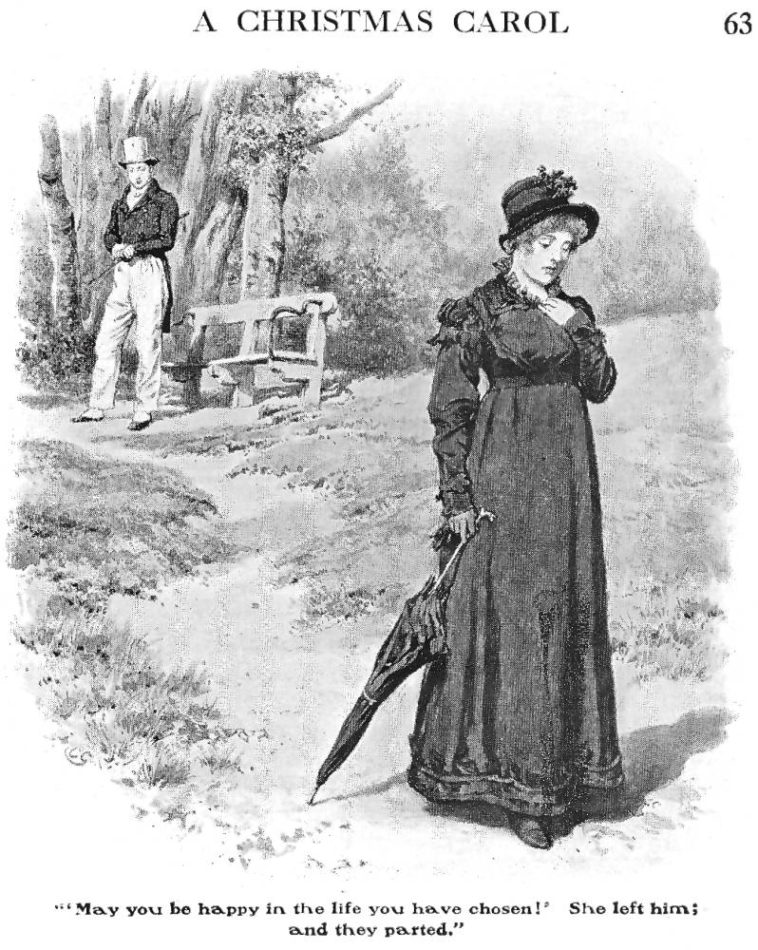 The scene is a short one in most adaptations. I think it takes up a page in the story, at most. But it sees Belle and young Scrooge talking about their relationship on a snowy day, the day that Belle finally makes a decision.