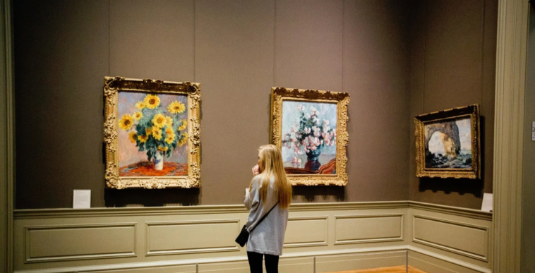 We go from painting to painting pointing at walls