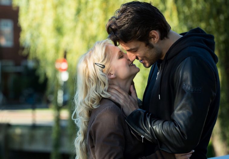 From there, it’s a quick escalation. We taste each other’s lips, start kissing passionately, and it doesn’t take long before we take off our t-shirts. Claudia wears a black bra… and I have no patience: I love playing with nipples.