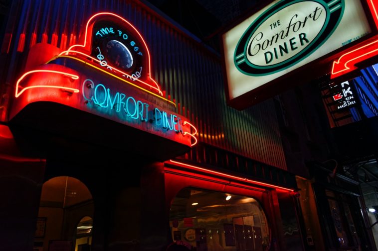 Placing his briefcase on the checker-board floor, Arnold slouches over the counter, nestling himself on his red cushioned stool.