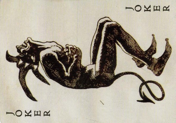 “Jokers are wild, D. That means they are the best, most versatile draw. Any card you need ’em to be, in any situation. That’s your jester. Most don’t keep ’em in the deck, see. Not a part of the fifty-two. Not a part of your standard game. But I like to keep our little clown. Makes things more interesting. Whoever grinned like this at your ‘standard’ game? Ha! Why not make things wilder? … We only have one of ’em, though. Rarity ups the stakes. One out of fifty-three means you only draw the jester every once in a while. Inevitably it comes when you need him most, to change everything about your hand and the game at whatever stage you come across him, snatching victory from the jaws of defeat and such, spicing the pot with wayward chances and turns within the game. Makes it better for everyone, even if they don’t appreciate it. Got it? … Shall we play, D?”