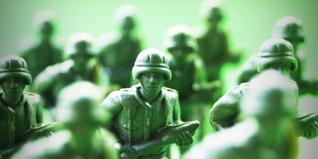 The congregation huddled together around the map. Toy soldiers were placed sporadically, with no immediate coordination.