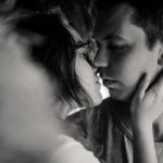 Mildly awake on a grey old couch with the moonlight tenderly hidden behind the shut down blinds. A hand forgotten on the side of a knee. A quiet kiss in the corner of the neck.