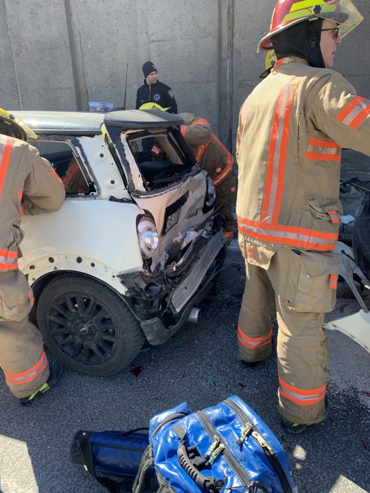 The accident happened because there was traffic at my exit. I was forced to slow down a bit too quickly, and the car behind me wasn’t looking. His big Jeep Cherokee smashed into my tiny Mini Cooper at full speed. There was a loud noise. My back bumper was embedded in his front bumper. All of the rear windows of my car were obliterated. My trunk was so smashed it no longer existed. I felt a huge pain in my head. The impact threw my head onto the steering wheel. I sat still with fear. A few minutes later, a huge bump appeared and so did the ambulance.