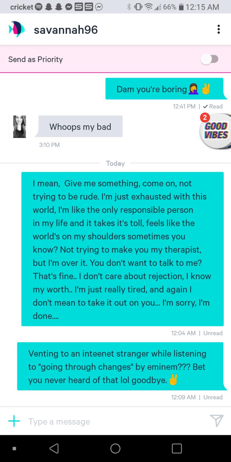 You just seem a little imature you really didn’t need to go on that rant after she said whoops my bad. If someone wasn’t giving you what you want on there just move on to the next