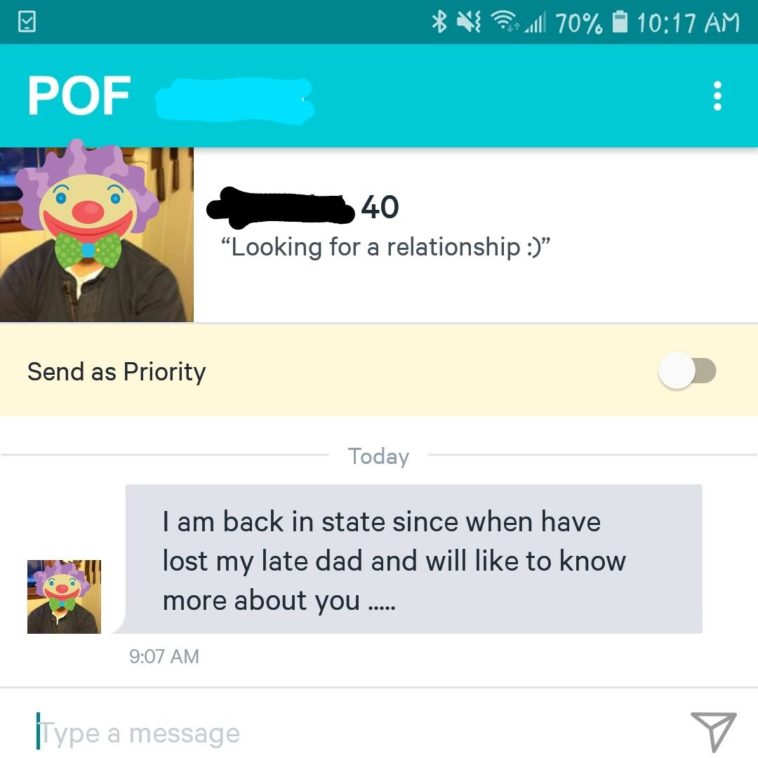 It says, « Hello, I am actually in Ghana and using a very common scam to try to swindle you out of some money. »