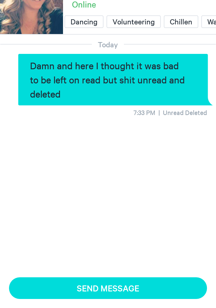 She saw your photo and noped right out. This is why I don’t put too much effort into the first post. While it sucks to be on the receiving end, I’ve done it too. If she’s a « no way in hell I’m dating that », deleted. I’m as superficial as the people we complain about 🙂