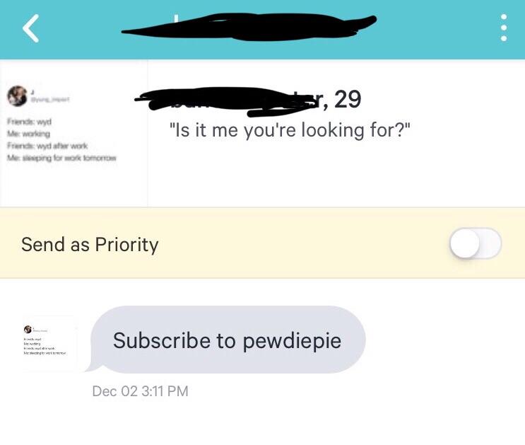 I had my profile set up so that only users with photos could message me first. Whenever I got a message from a guy who had a photo that was of a quote or something that was not him, I would always say sorry but unless you have an actual photo of yourself I can’t continue this conversation. One guy said well bummer, I am married anyways.