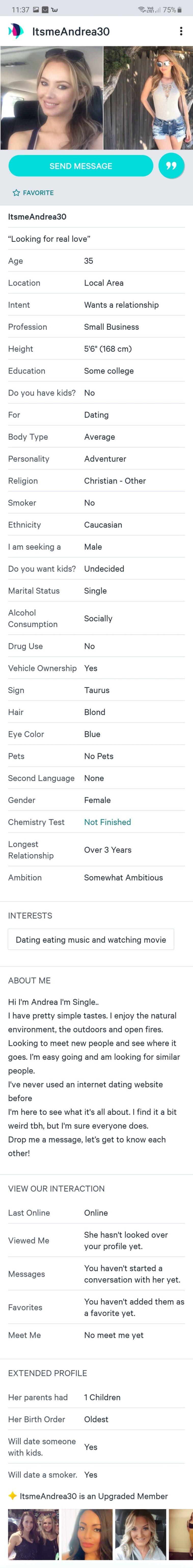 I’m a woman so don’t really get what makes this profile a scammer, except for the « local area » part.