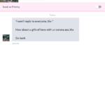 Me :Hi, how are you? Her :I’m fine. How are you ?? Me: Busy I’m at work right now but maybe we can chat sometime at least your close . Her : Ok stay safe. Drop me your phone number. I will text you.
