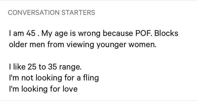 POF : He messaged me.. His profile says he’s 25. I’m younger then 25…