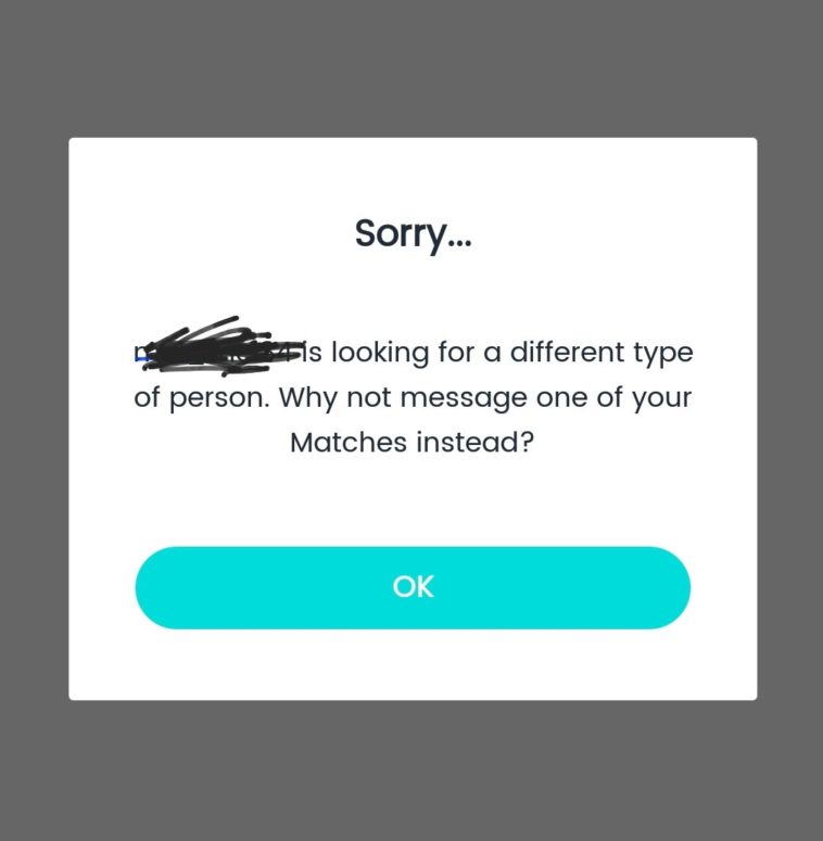 She’s on both my recommend and match list. I go to message her and this pops up. We have never interacted before.