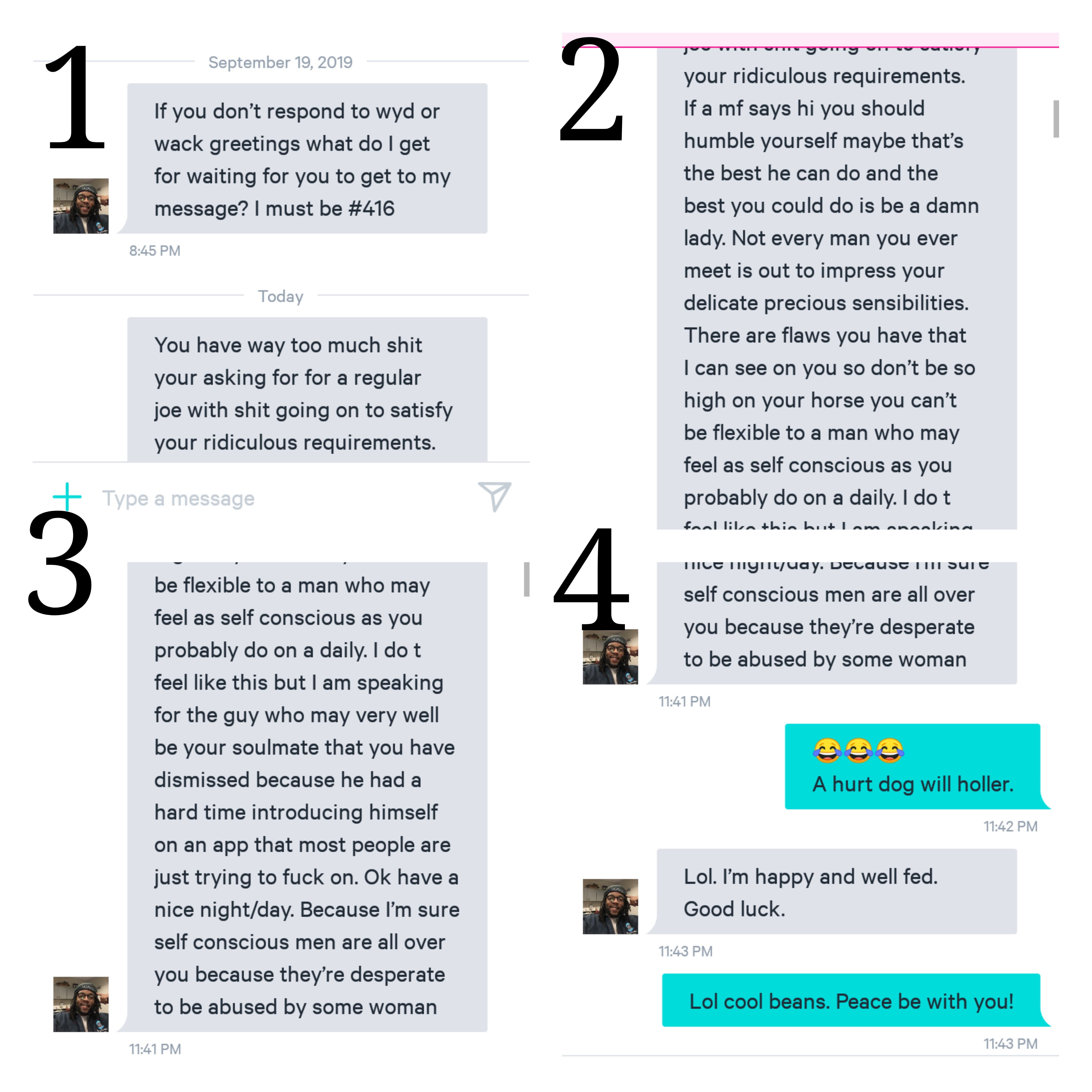 Hahaha I’ve gotten attacked the same way. Talking about I take the app too serious or ask for too much. Reality is most guys on there can’t even approach a woman decent enough even when we give them a damn handbook