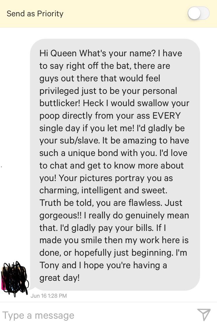 Ignore the assholes and respond to the guys sending you messages that aren’t obscene, there’s a seas of men out there trying to find some interaction, be someone’s reason to smile.