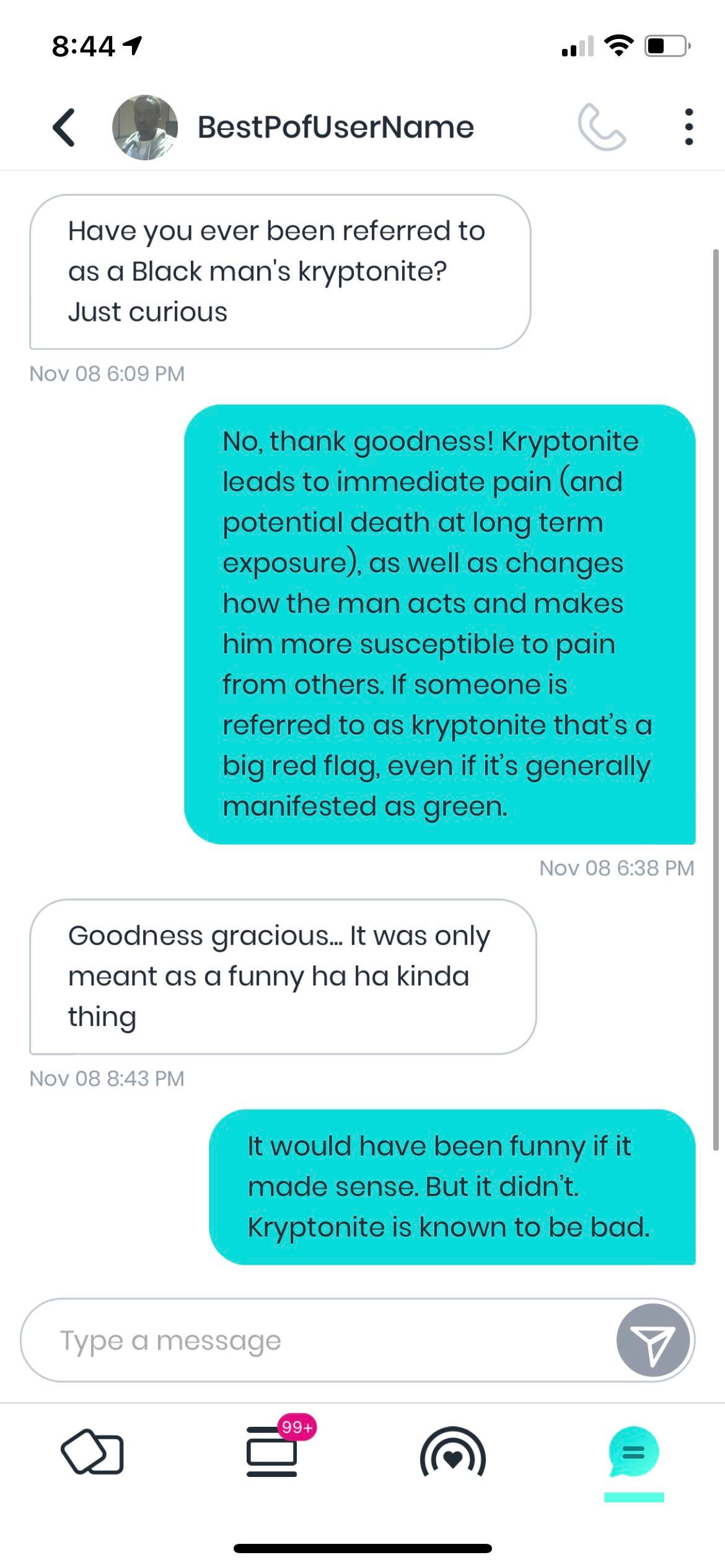 POF : If you’re going to try and use a stupid pick up line, maybe don’t call them “kryptonite”