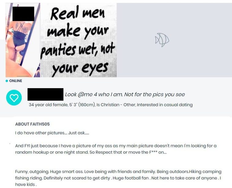 i mean if her ass is her best asset, i can see why shes putting that there. but again, the issue women have with online dating is that no matter what she puts as a profile picture, a bunch of men will take that as her being easy or a slut or whatever. i had a picture once that showed me knitting at my desk with my keyboard in the pic. it was to showcase that i do in fact knit and i do game based on my obvious gaming keyboard. it showed like 2 inches of my thigh, and i swear i got so many slut comments for showing 2 inches of thighs. then theres my breasts. they aint small. i get a lot of comments about me putting my tits out there. no push up bras, no v necks, no plunging neck lines, no see through shirts, just regular business casual im not getting called out for wearing this because its an appropriate business casual shirt, and i still get told to « cover up » like where am i hiding these tits brah? you expect me to tuck that shit in my armpits to appear as a modest b cup or some shit?!?!?