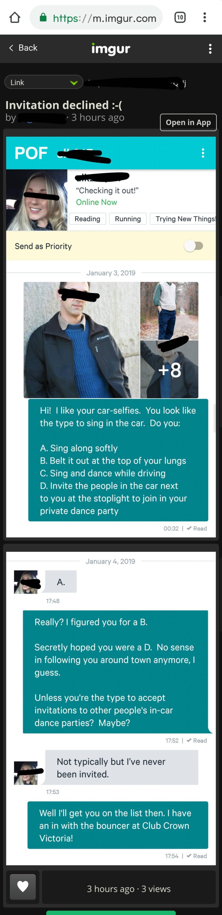 I like your style! Your messages were creative and engaging. Either she wasn’t interested or she is just a boring person.