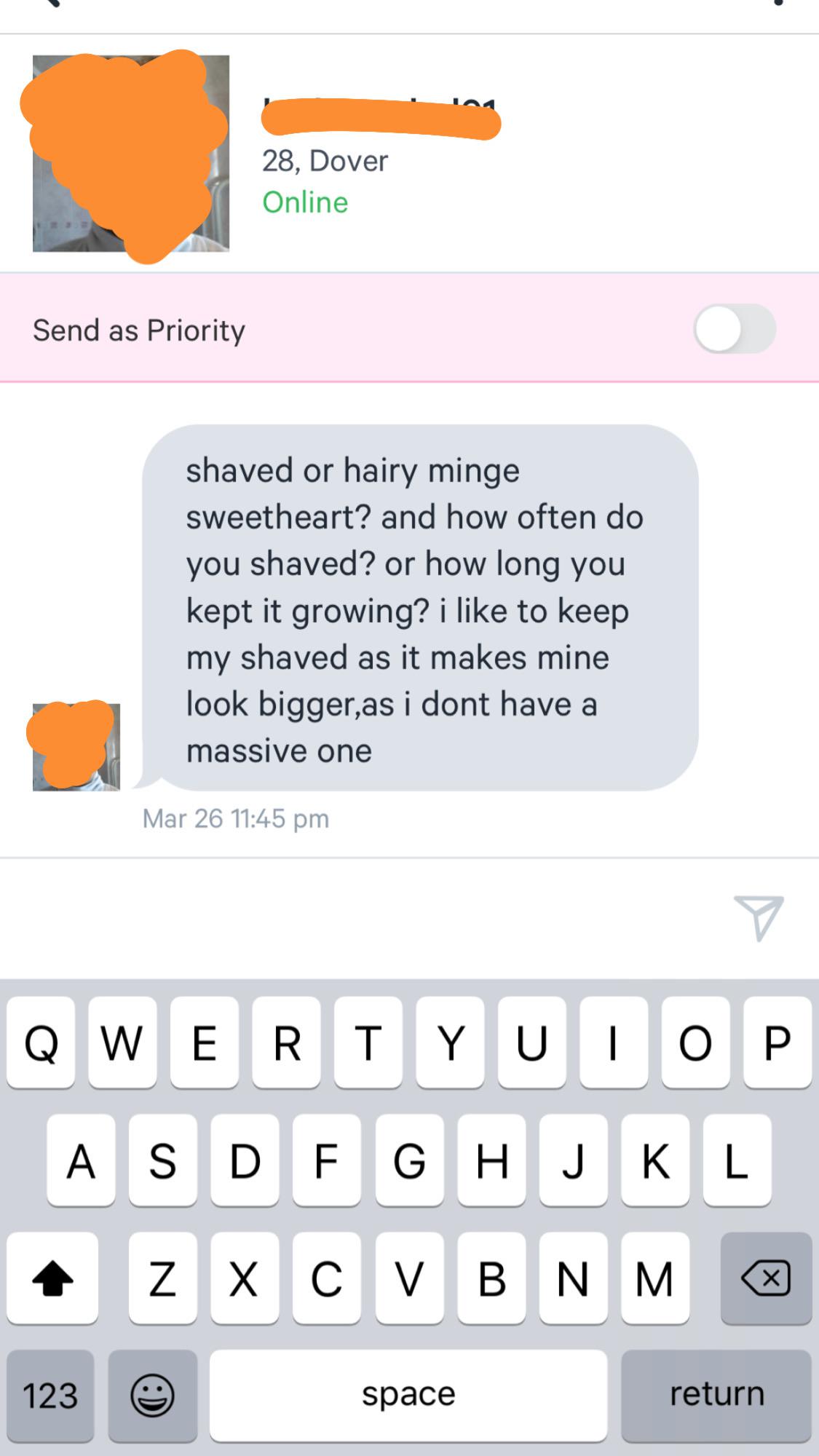 Was this the first message or was the convo going in this direction before? Is your profile full of sexual content to encourage this kind of talk? Just trying to get some context here, but I really doubt you’re leading on that foot!