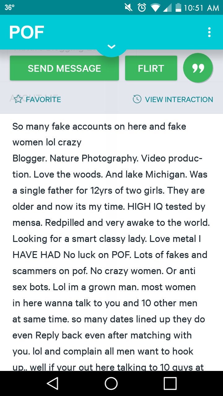 I really don’t get this kind of person. Does he think a woman is going to read his profile and be excited to talk to him?!?!