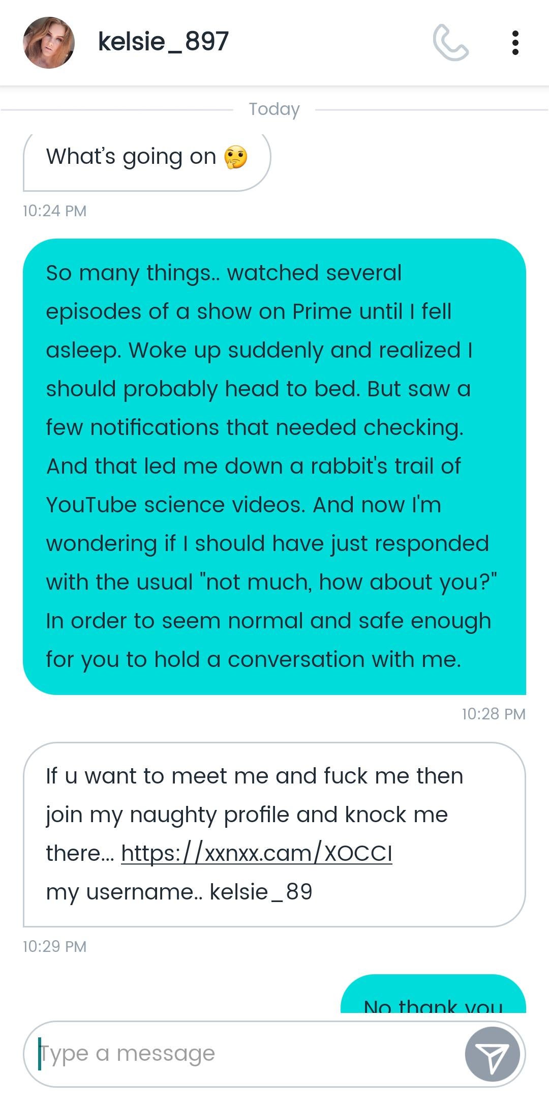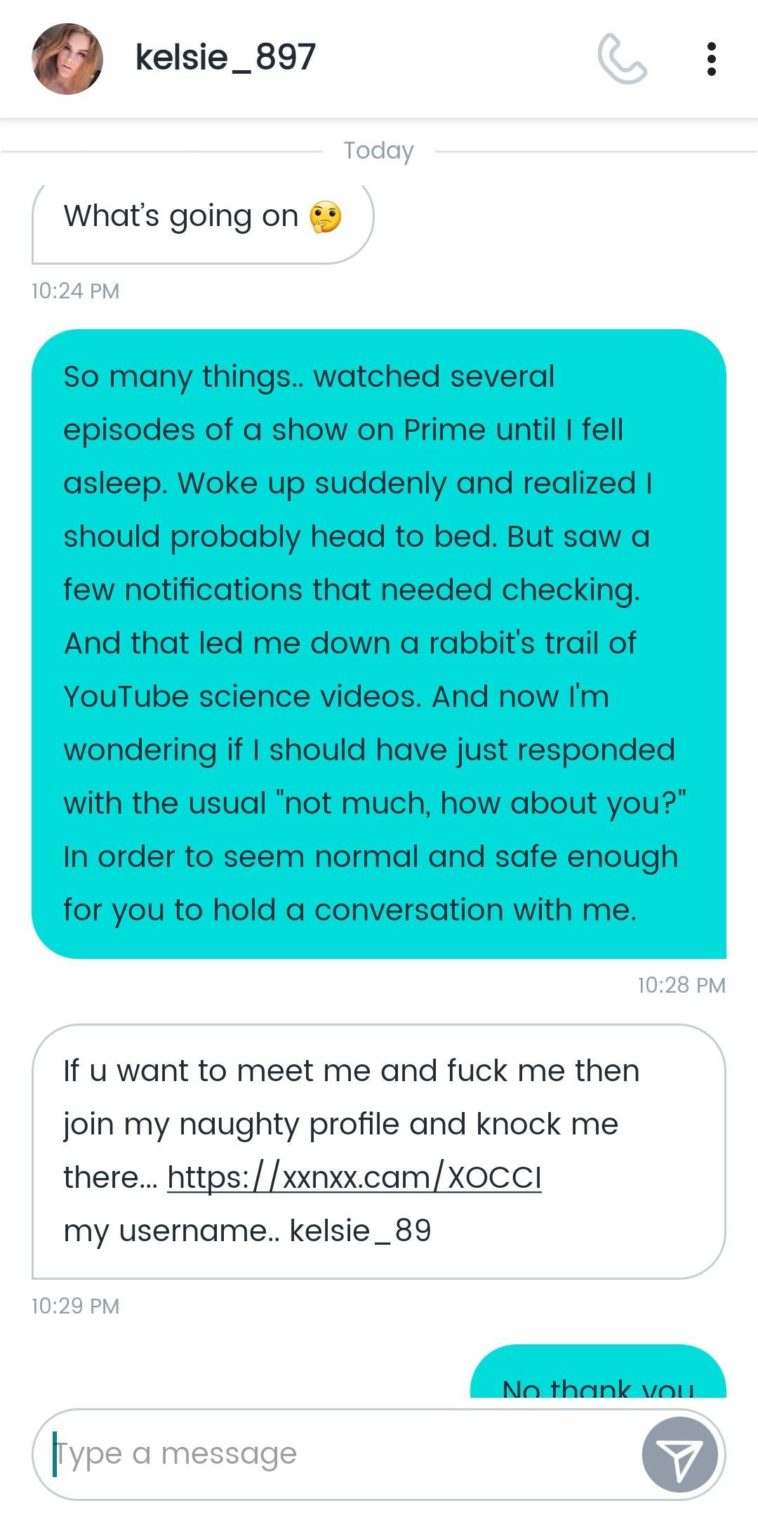 I once trolled a bot after it solicited me for an xxxcam session with this line: