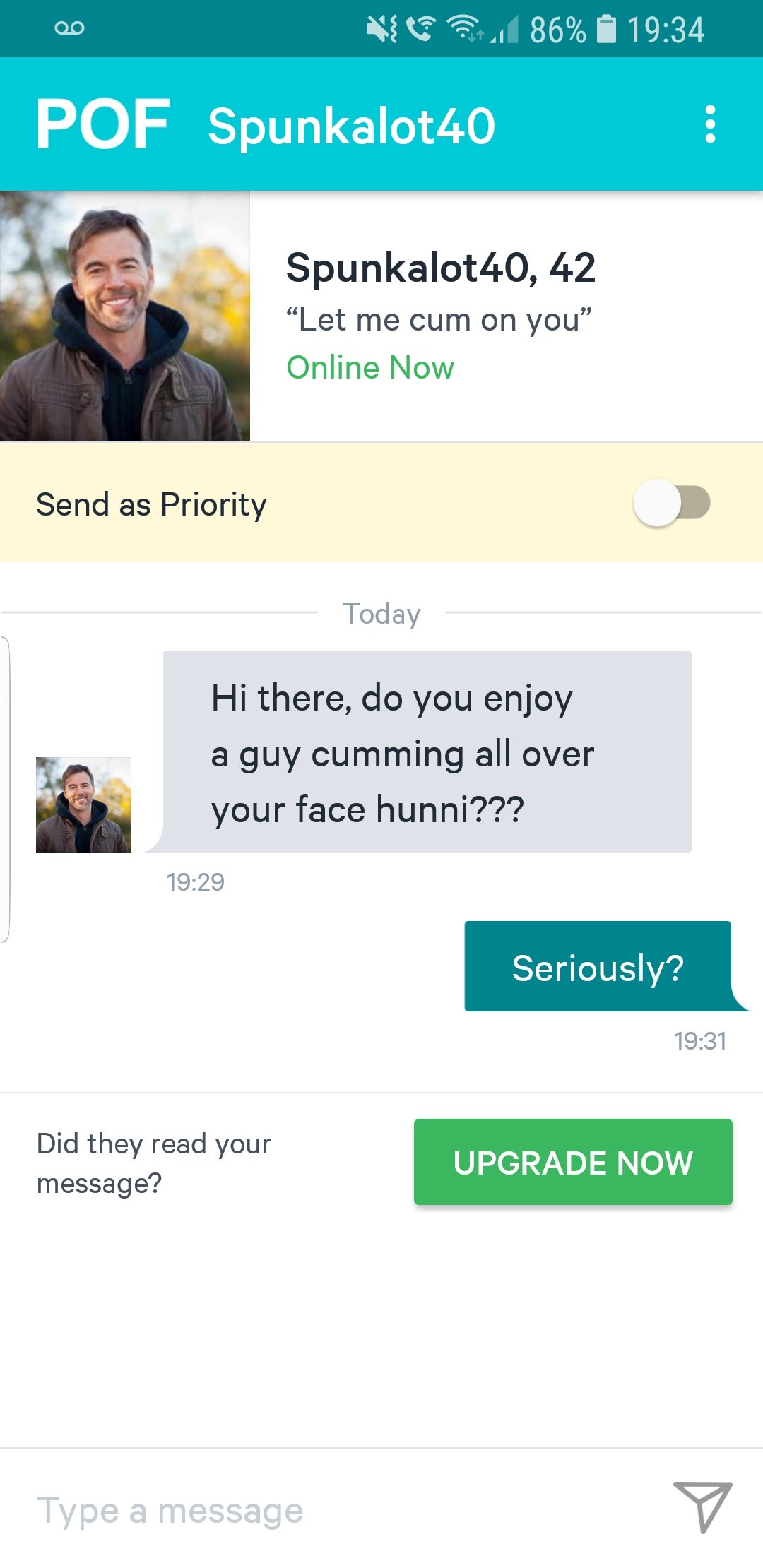 An obvious troll account from his username, headline and opening message. It’s probably some 13 year old kid getting a kick out of it.