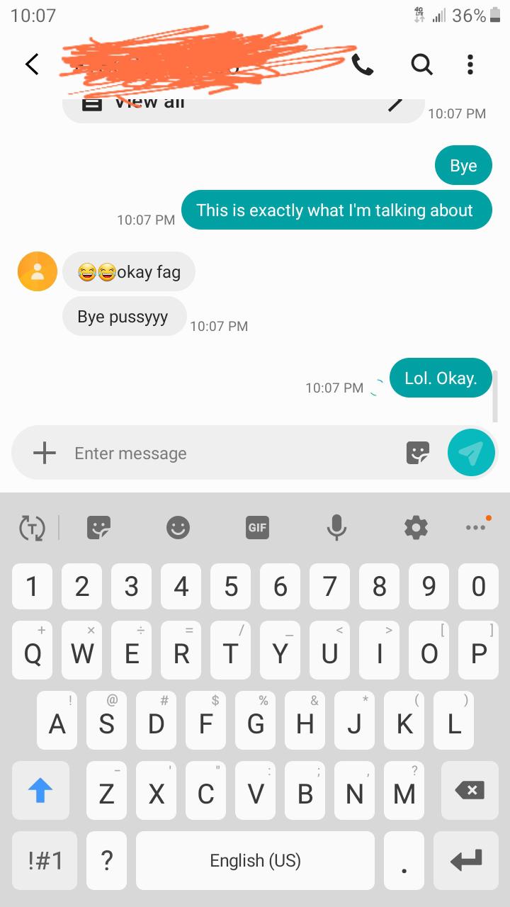 So, this person was soliciting membership for her premium and giving a list of prices. I previously told her that we weren’t looking for the same thing over the site, but I agreed to text her anyway. Apparently not wanting to be another’s b**ch is « gay » now.