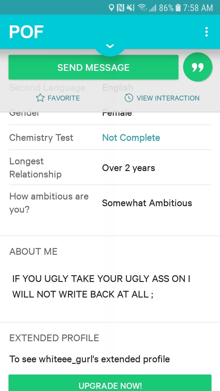 She only had one photo with a filter. Body type and has children were answered as prefer not to say. No higher education and a dead end job.