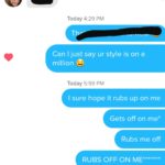 1. I don’t get how some guys think that is really going to get a woman to go on a date with them. I mean that is just so unmannered its nuts. Not saying girls don’t act like this because they do and they can, just stating I would not respond if a guy sent me a message like that. I had a guy once ask me if I was Irish because his penis was dublin
