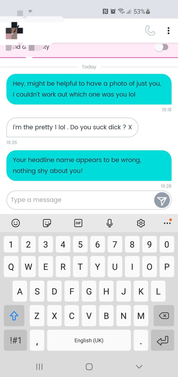 This progressed to him telling me he had a massive cock so it was a shame I didn’t want to suck it for him and then he resorted to telling me he gets plenty of attention but ‘the fat ugly ones appreciate it more’ just urgh!