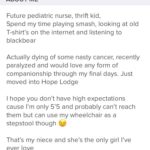 Tinder : I have made my bio more depressing than it has ever been in my many years of tinder: I’d say I’m not looking for pity but I’ve had more matches with some of my most attractive matches ever. I have no plans in ever seeking a romantic relationship again so I’m fine with my method as annoying as it is