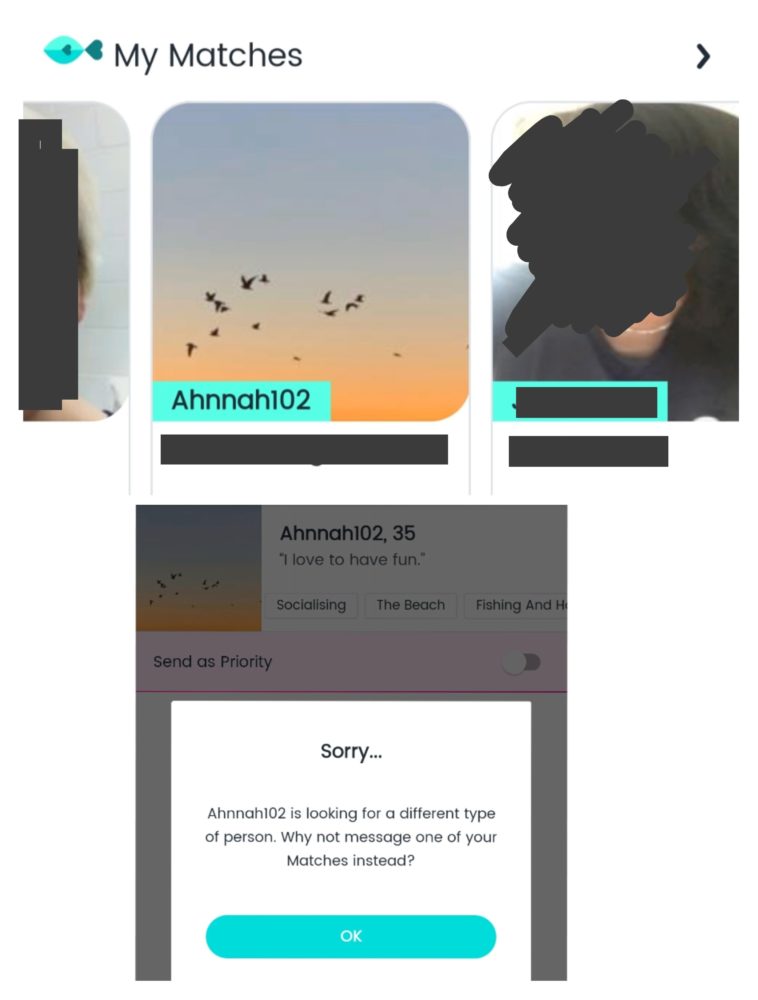 They need to add some type of symbol next to the pic profile, to let you know you cant message them. Instead of wasting time clicking on someone. I think some bots are set up this way so you can’t message them first.