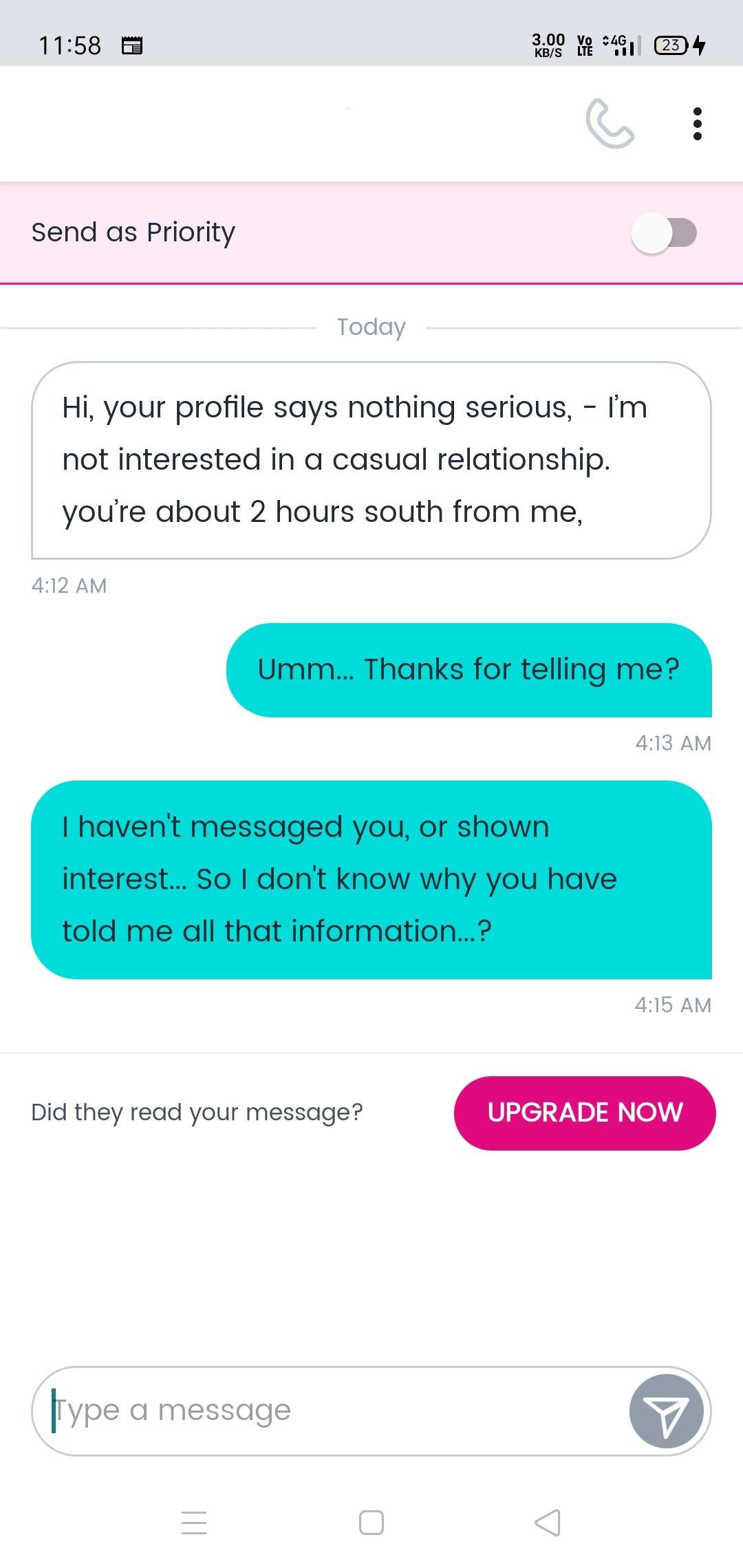 Woke at 4am with a coughing fit, so was browsing online while I was awake.. only to receive this message from someone I’d never interacted with.