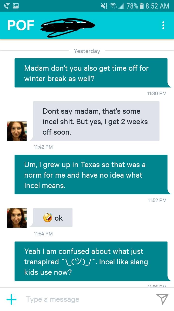 Incel is the new lefty buzzword. Dont let a woman degrade you like this, just look at how patronizing her tone is.