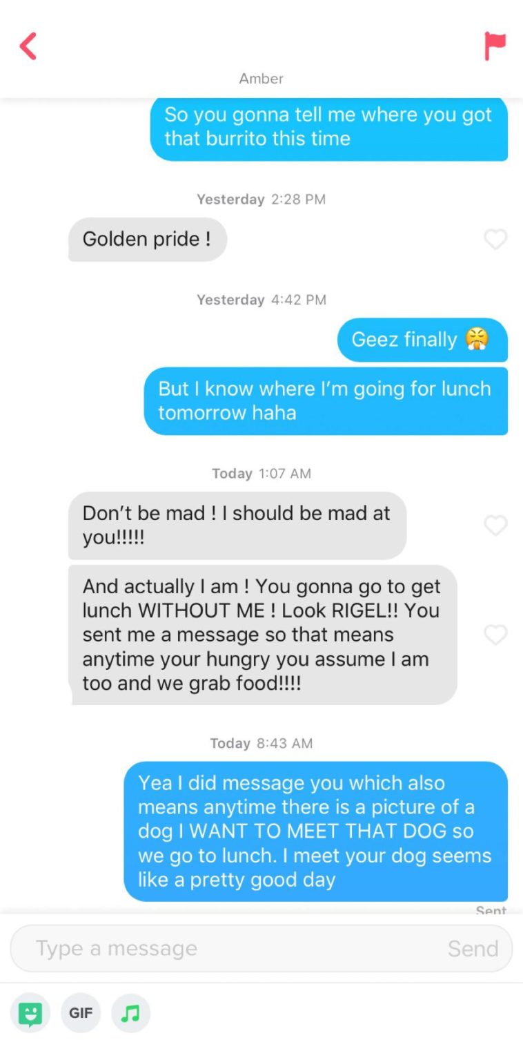 Tinder : Asked where she got the burrito in her picture first time we matched