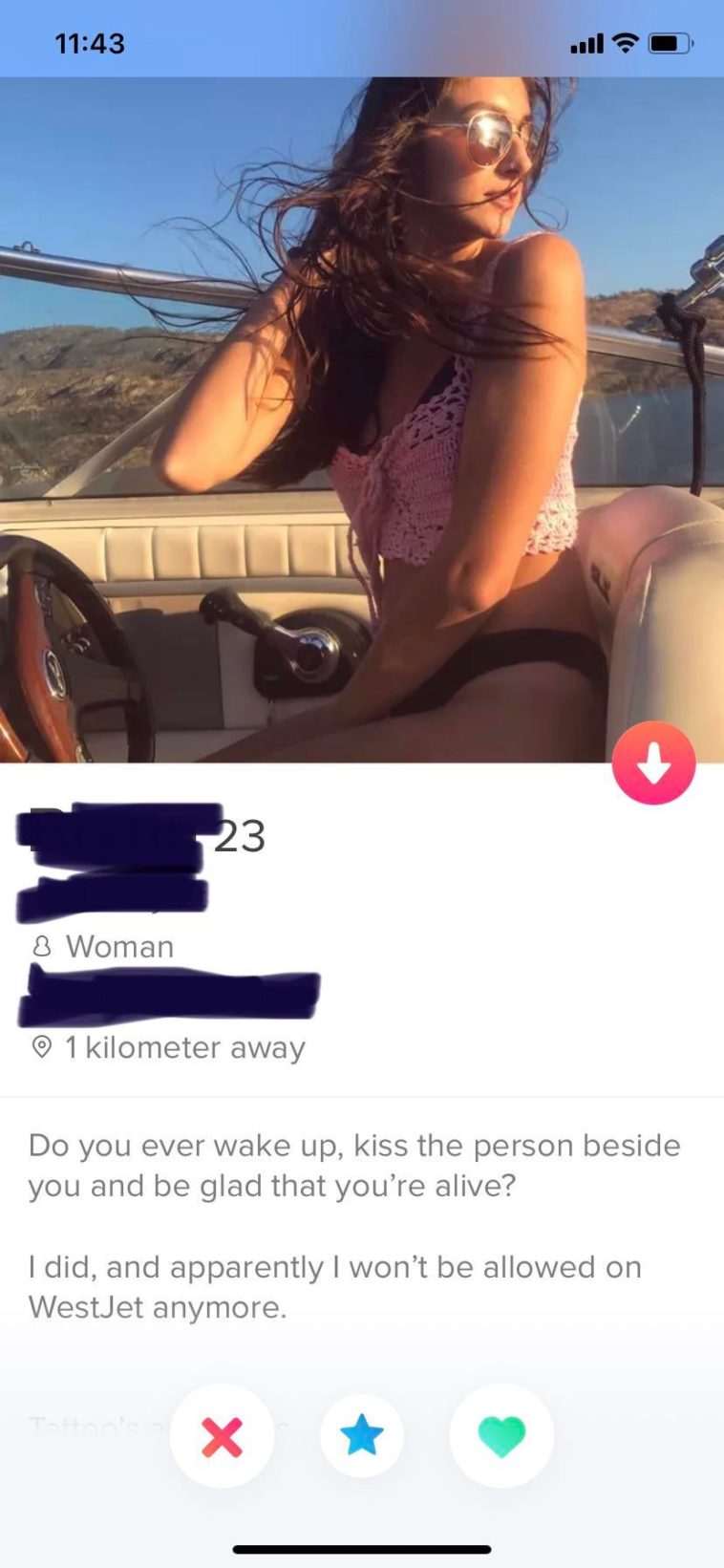 Tinder : Best bio I’ve seen in a while; WestJet is the airline