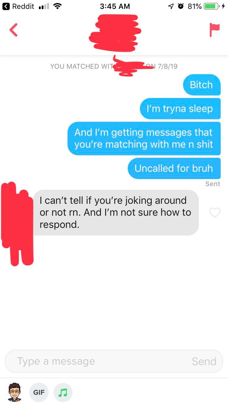 You awkardly tried to fix that saying it was a joke, but it didnt work out and now she is having an orgy with ur neighbour