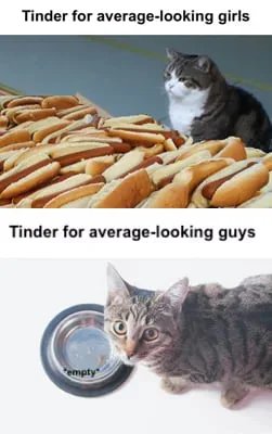 Average Guys: 500 right swipes, 40 matches. 15 are bots, 15 are not what they’re looking for. Out of the remaining 10, there are 5 that are already asking for money and about 5 that end up looking okay, but out of those 5, maybe 2 can hold a conversation and might go somewhere.