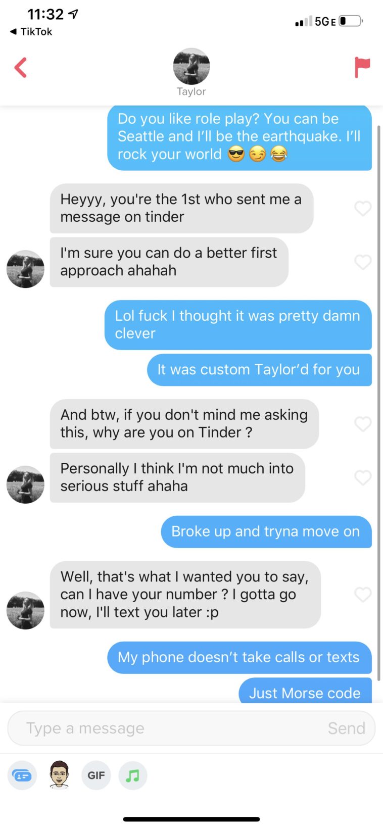 Tinder : Cheesy pickup line wasted sadly