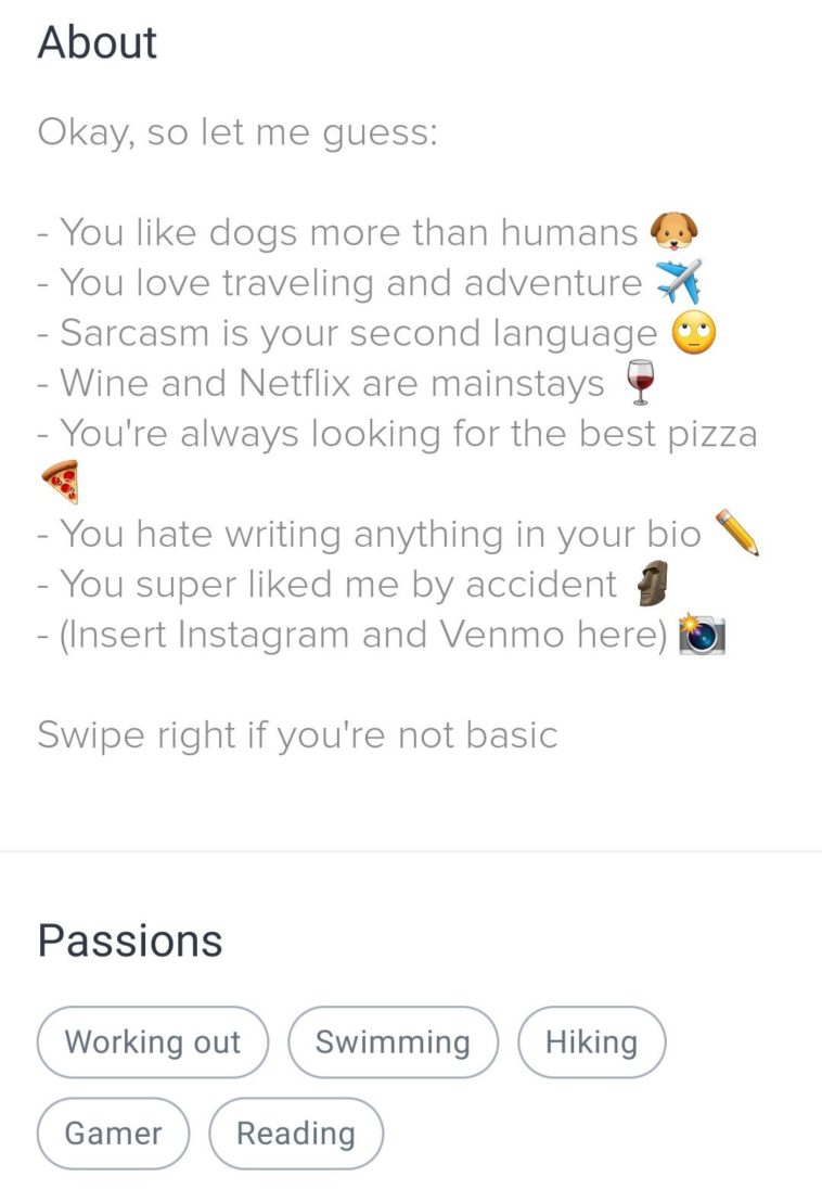 This is exactly the type of cringy shit I expect to see from an r/tinder users bio