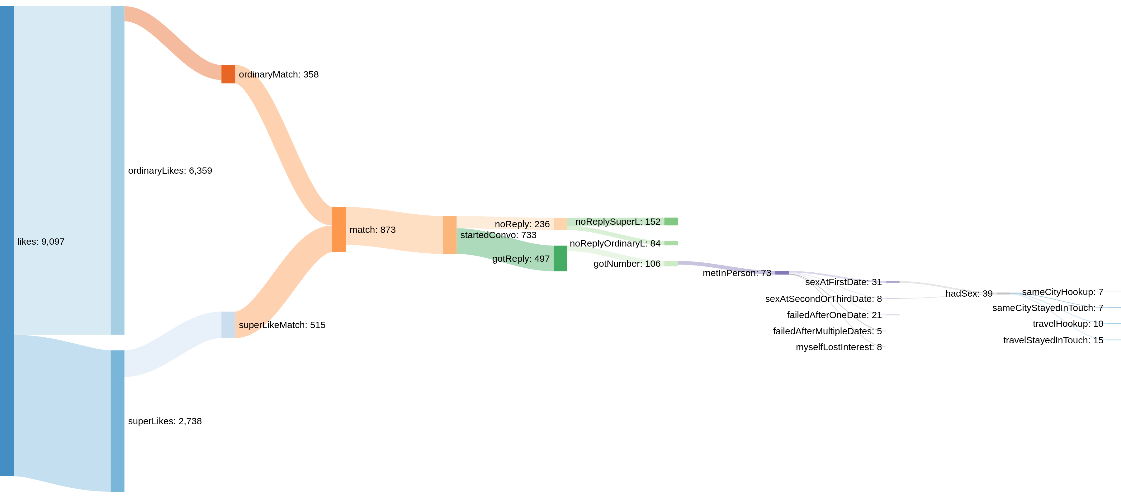 Tinder : Data 28-29M detailed(superlikes separate), successful(900 matches, 40x « scored ») 2 years