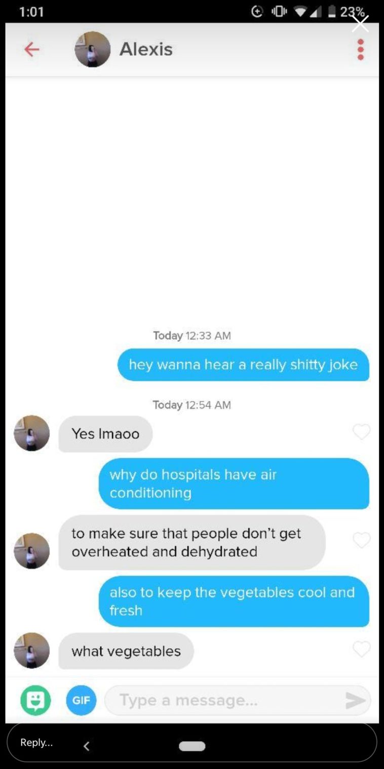 How did she miss this one? Christ good looks really are the free pass on any kind of personality/intellect. Shoukd have guessed itd fly over her head when she asked to hear a joke and she replied with dehydration. Jeez.