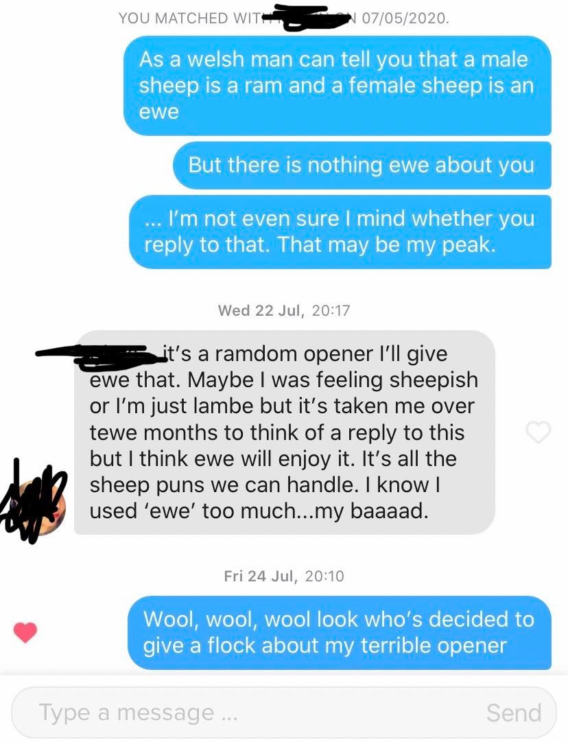 Love this! It’s ewenique, excellent repartee & it shows a similar sense of humour. Would love to know if they met up and how it went…