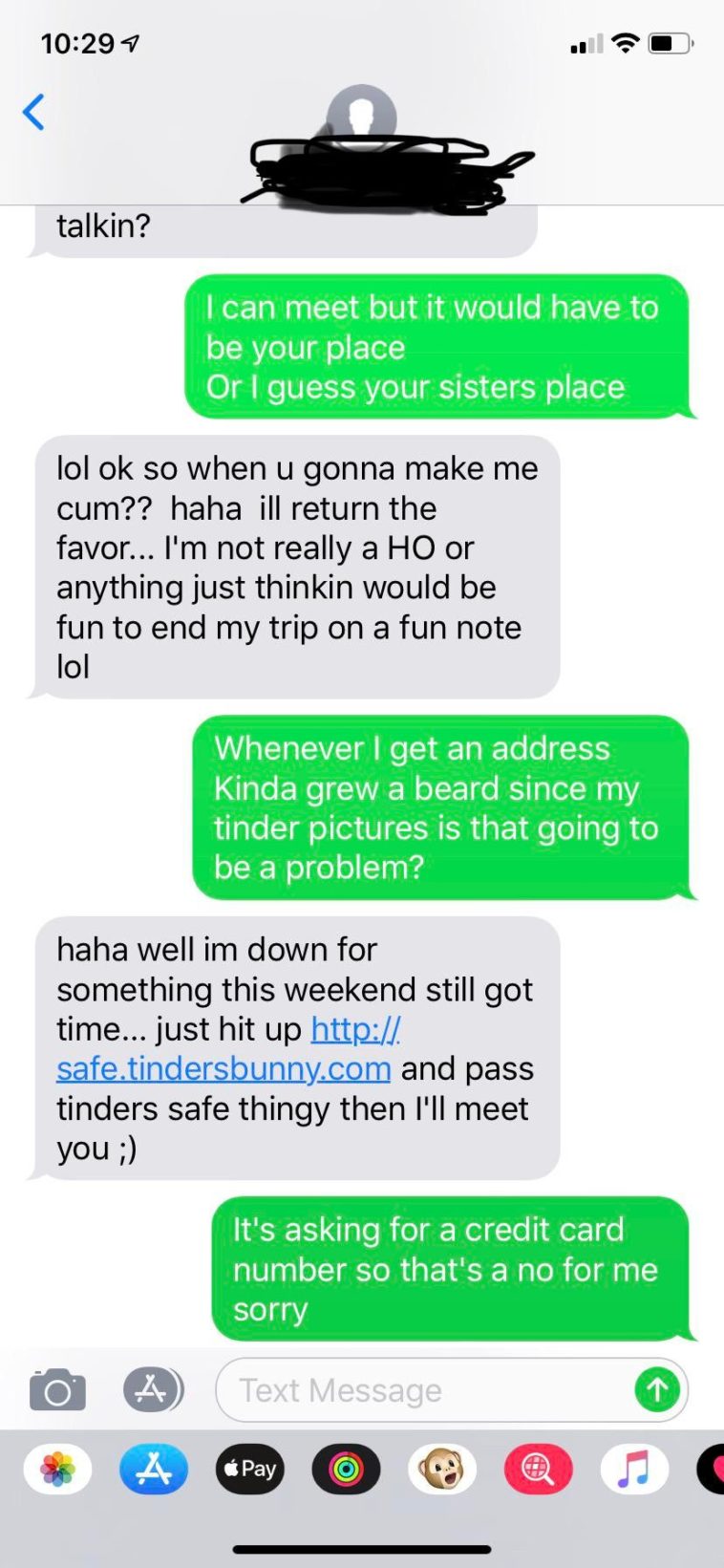 First day on tinder I knew it was too good to be true. Link redirected me to daterverify.com which asked for my cc information