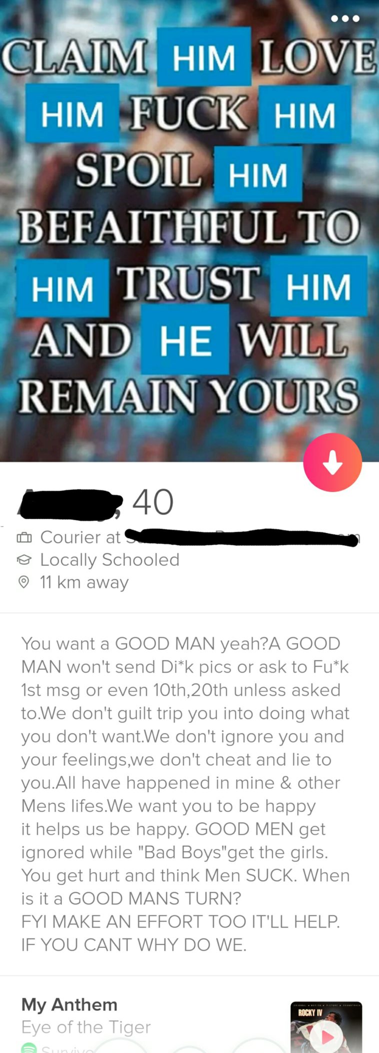 Tinder : Found my first Nice Guy! Did not Like, for obvious reasons.