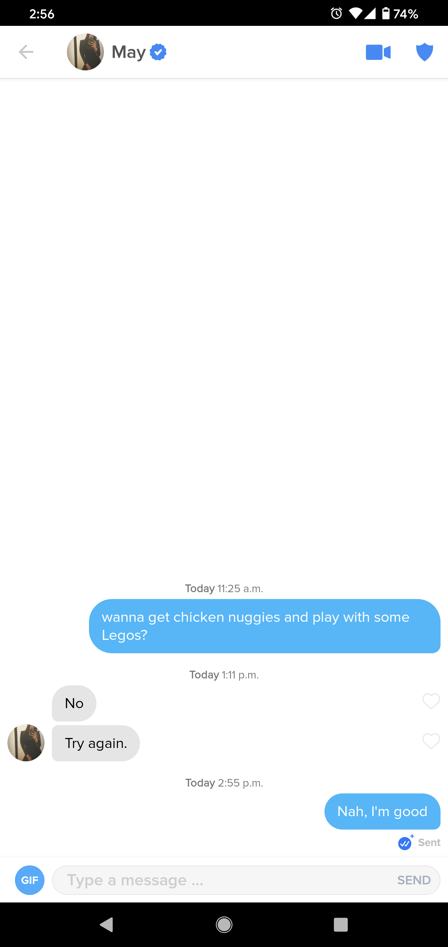 Tinder : Guess not everybody likes chicken nuggies 🤷♂️