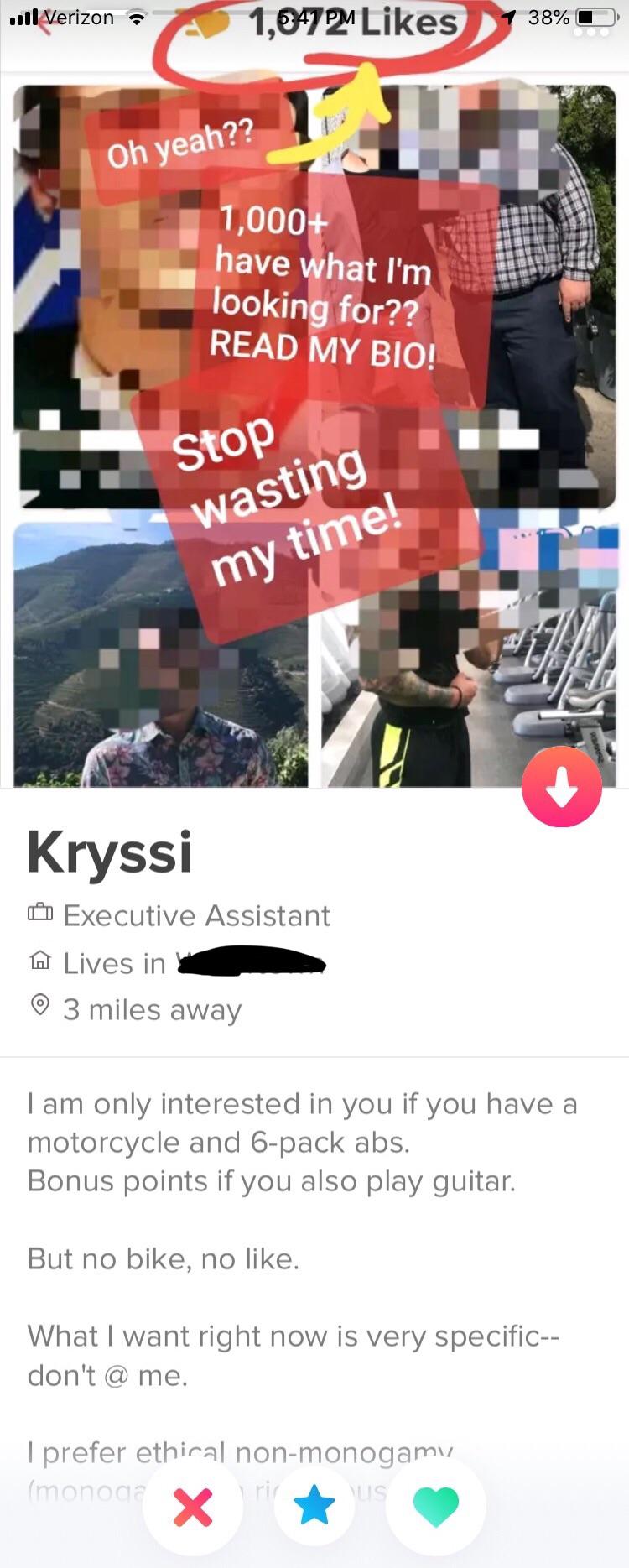 Tinder : Guys please stop wasting her time, might post to r/choosingbeggars